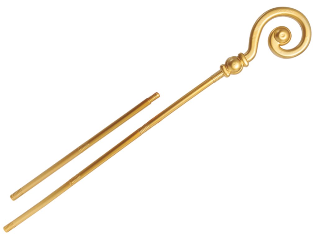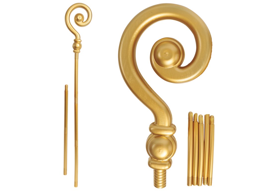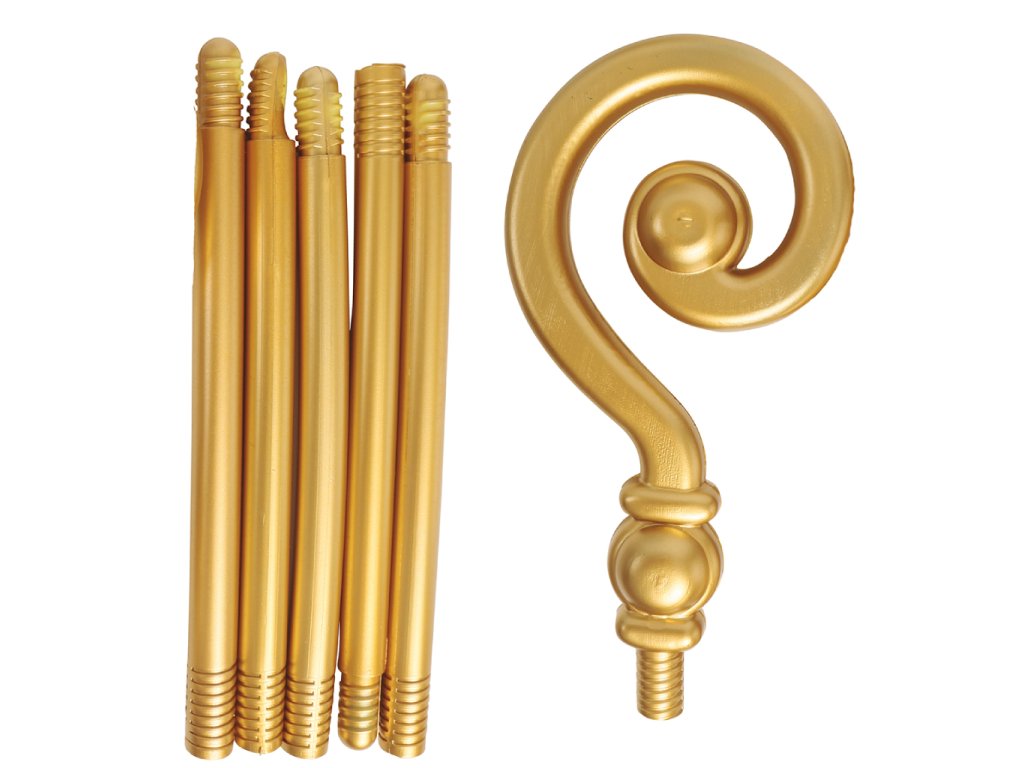 Plastová zlatá Mikulášská berla složená z pětidílné tyče a spirálové hlavice, celková délka 184 cm. Rozložitelná tyč umožňuje zvolit délku hole.