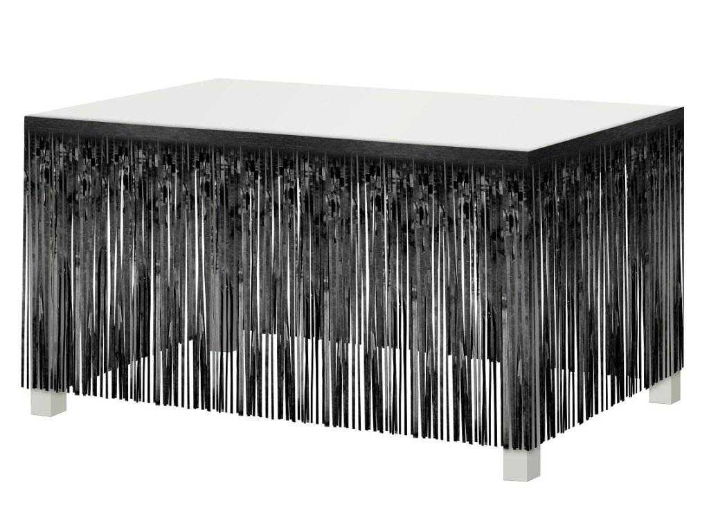 Rautová sukně tvořená fóliovými třásněmi s pevným okrajem v metalické černé barvě z kolekce Beauty&Charm, šířka 300 cm, výška 80 cm.