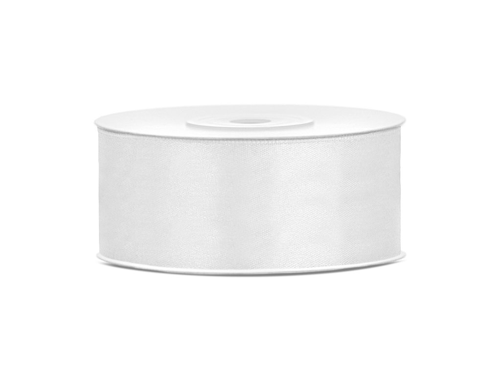 Stuha saténová bílá, 25 mm x 25 m