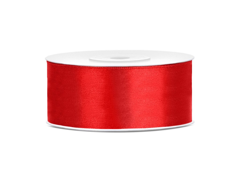 Stuha saténová červená, 25 mm x 25 m