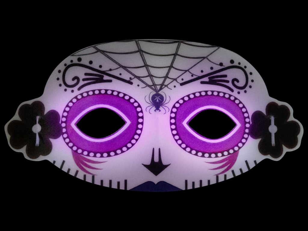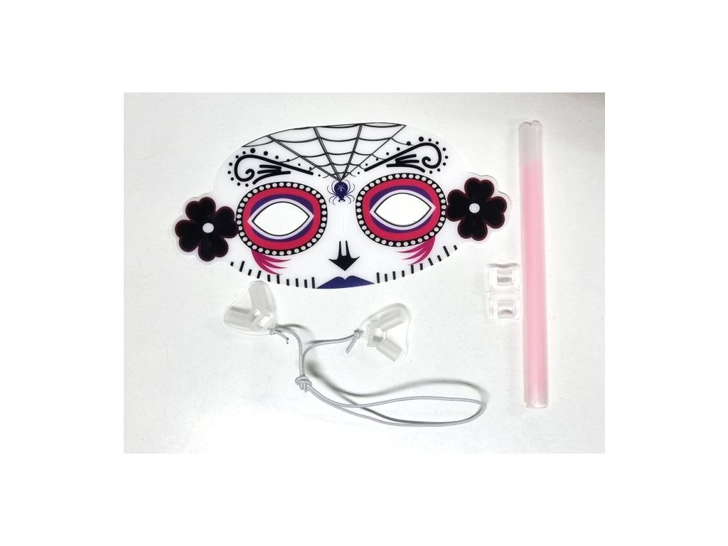 Karnevalová škraboška v bílé barvě s pavučinou svítící ve tmě, velikost 19 x 11 cm.