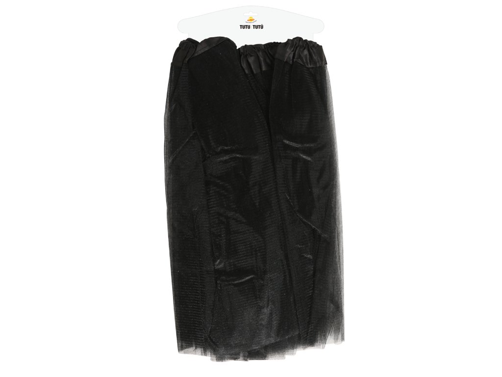 TUTU sukně v černé barvě vyrobená z tylu, v pase na gumu, lehce průsvitná. Délka sukně 60 cm.