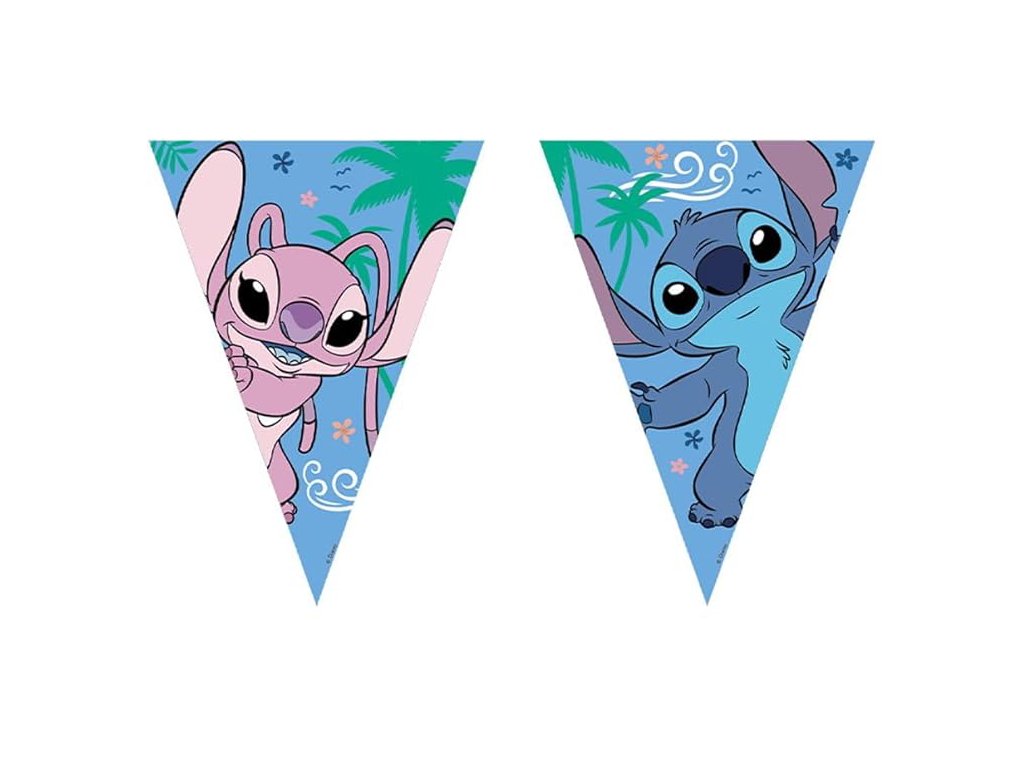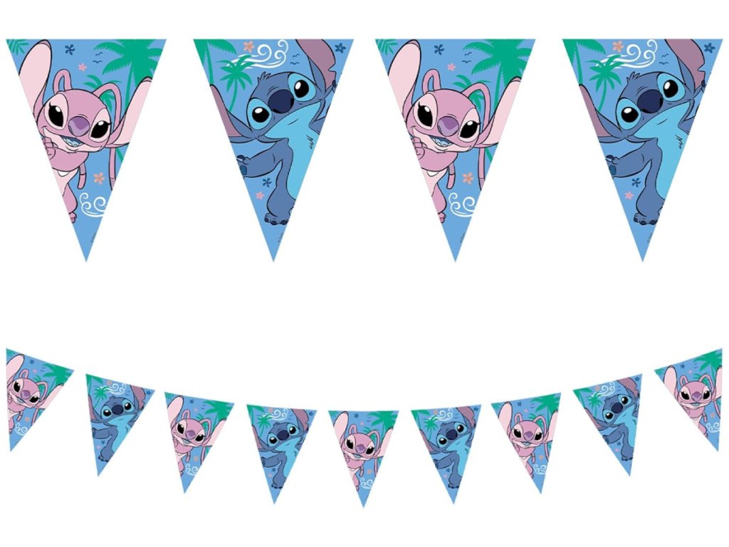 Papírová vlaječková girlanda s motivem Stitch, velikost 230 x 30 cm, celkem 9 ks vlaječek.